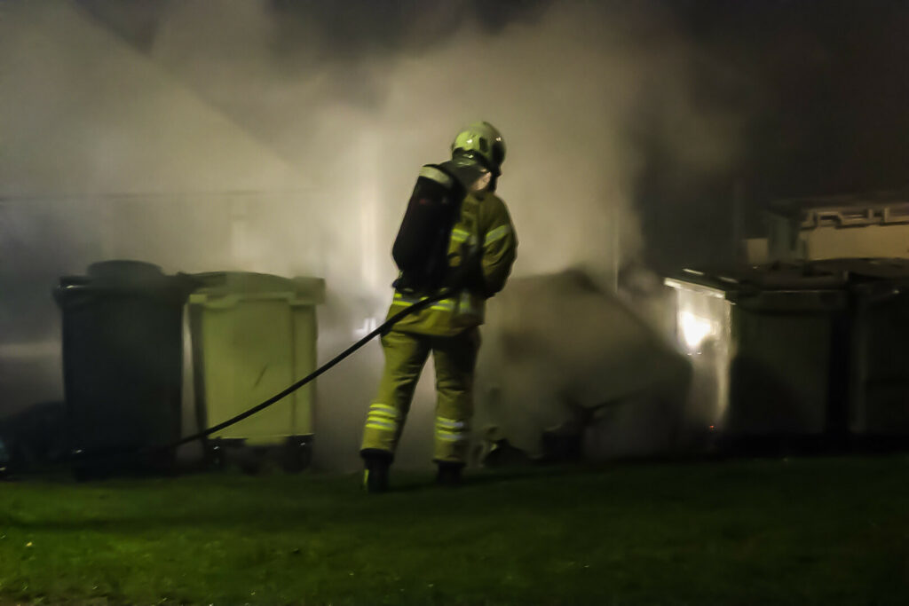 En container er i brand og brandvæsnet er i gang med slukningsarbejdet på stedet.