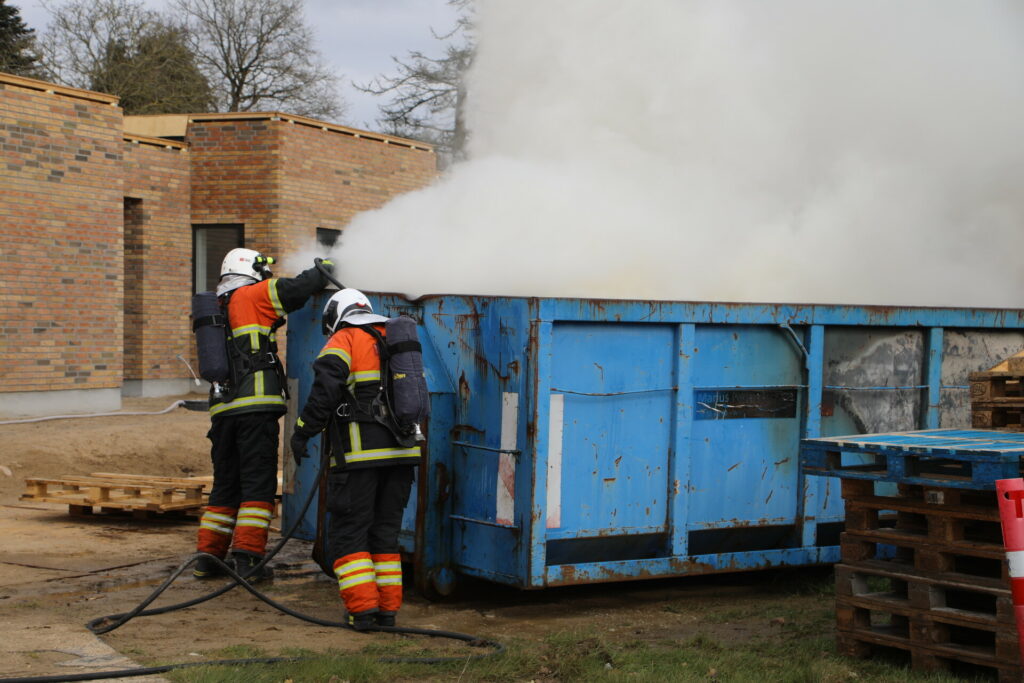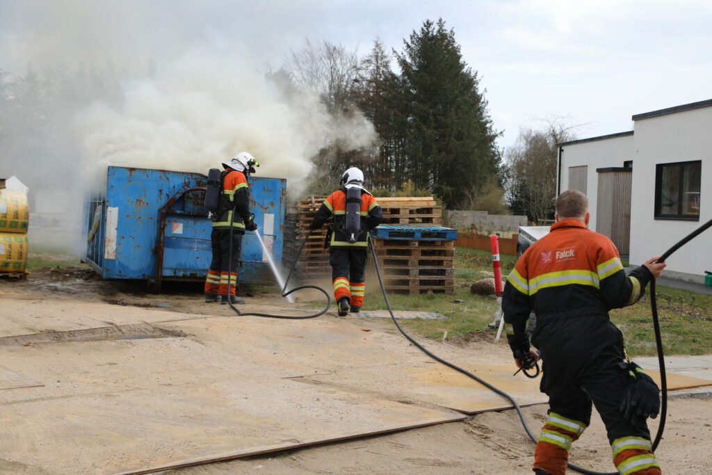 Da de ankom til stedet, påbegyndte de brandslukningen af den åbne container.
