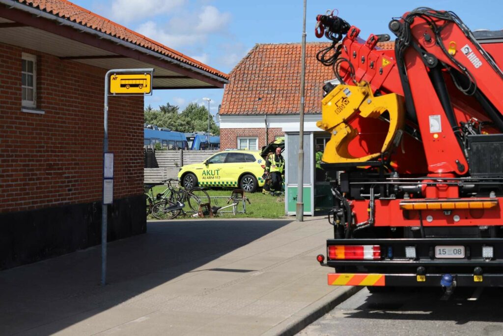 Vagtchefen tilføjer, at togdriften til og fra stationen er stoppet. Stationen ligger mellem Frederikshavn og Skagen, og den bliver ikke betjent af DSB – men af Nordjyske Jernbaner.