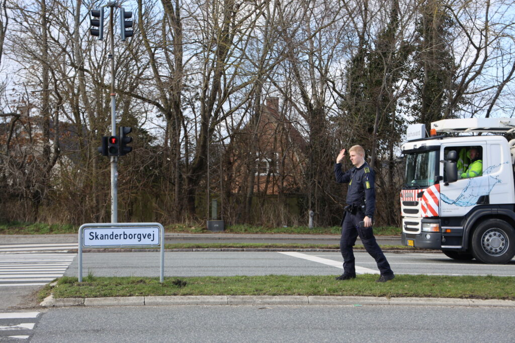 Torsdag eftermiddag er politiet ankommet Skanderborgvej i Århus, hvor en cyklist er blevet påkørt i krydset.