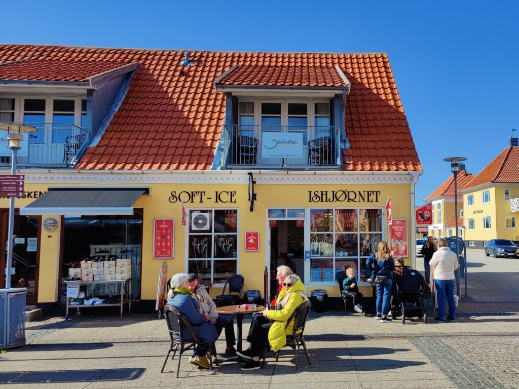 Også ved ishuset var der mennesker, der fik en is trods kun 12 graders varme.