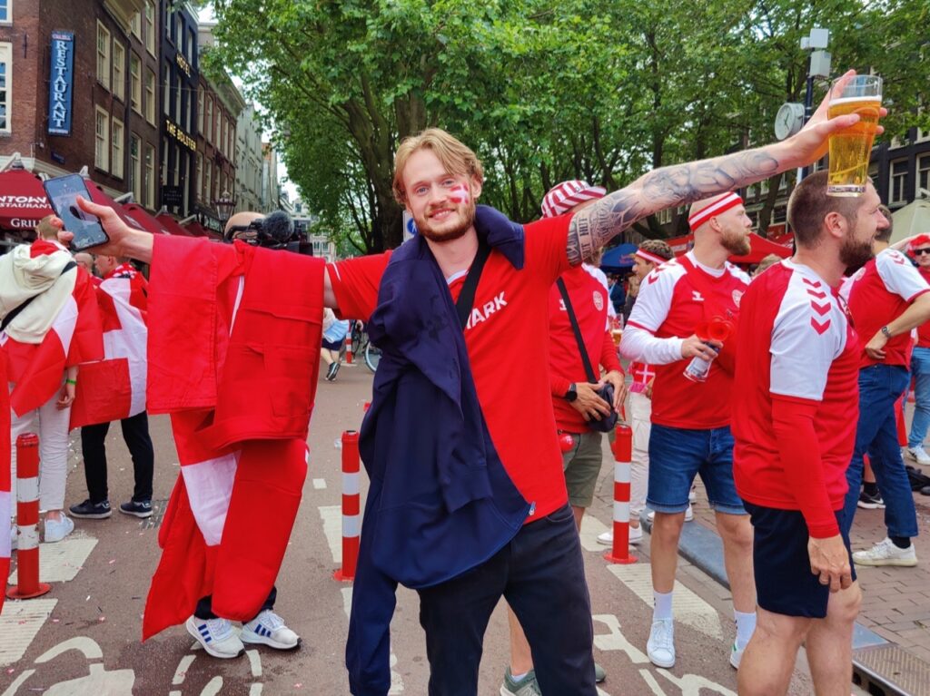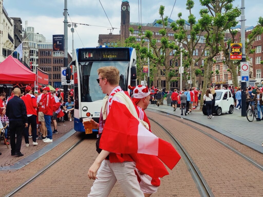 Af: Redaktionen 26. jun. 2021 - 19:57 Der er vild stemning i Holland, hvor massevis af danske fans er i Amsterdam for at støtte landsholdet mod Wales.