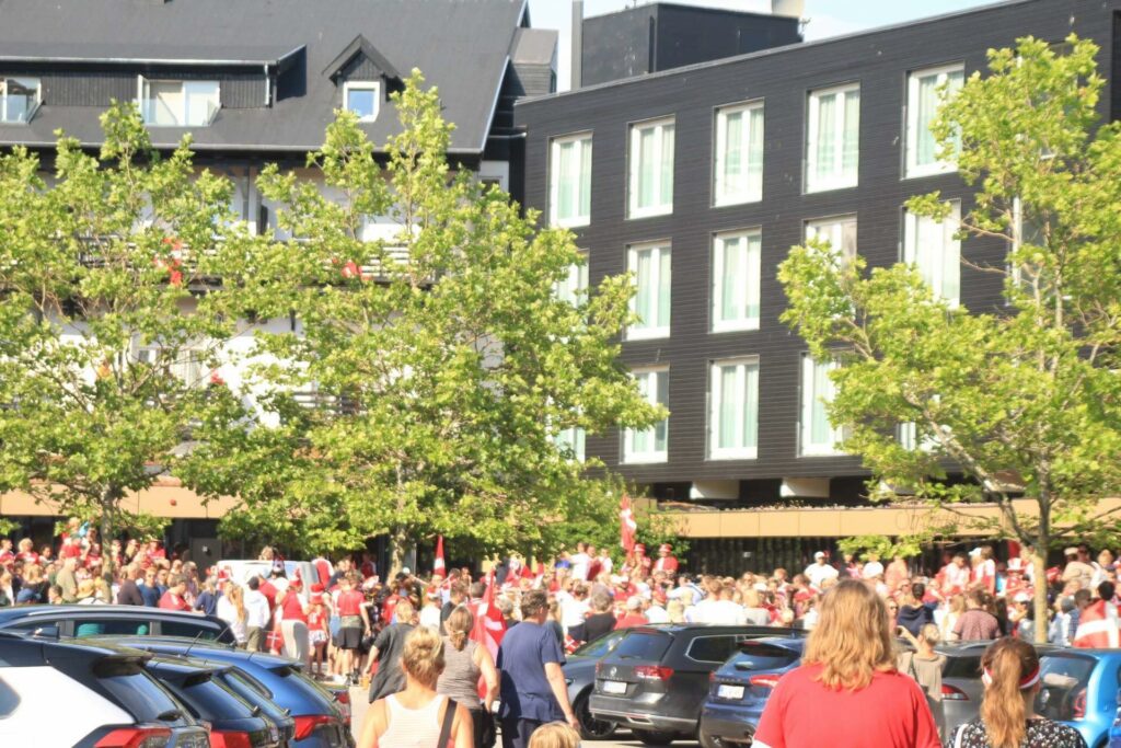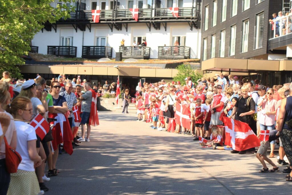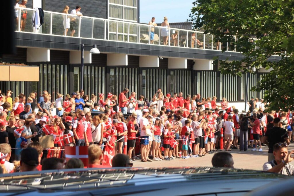 Efter gårdagens kamp, hvor Danmark vandt mod Tjekkiet, direkte til en semifinaleplads i EM , står de trofaste danske fans klar til at modtage landsholdet i Helsingør.