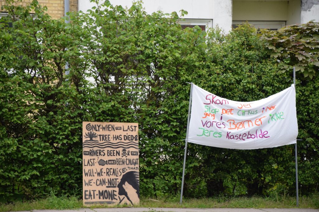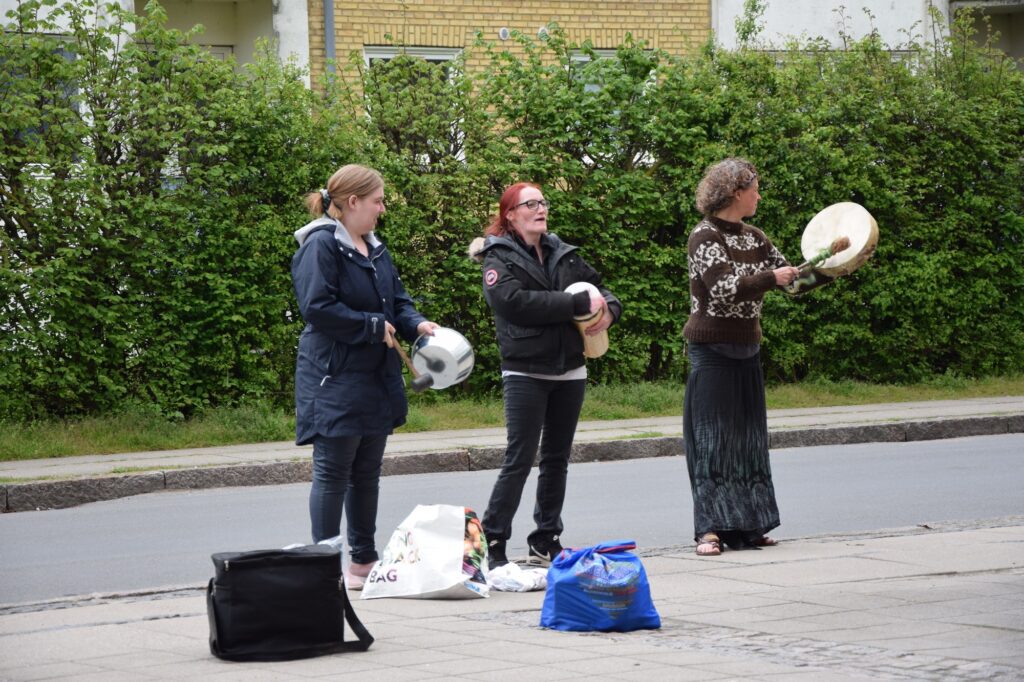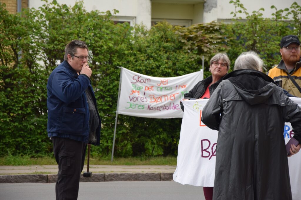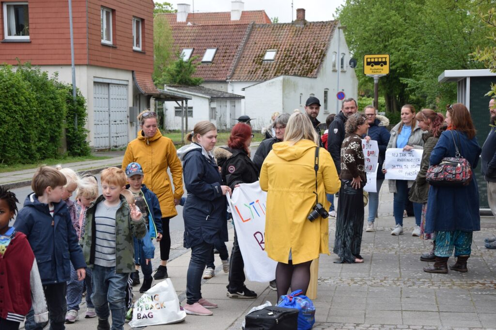 Folk var troppet op foran rådhuset i Rudkøbing med trommer, sang, bannere og opråb for at vise deres utilfredshed.