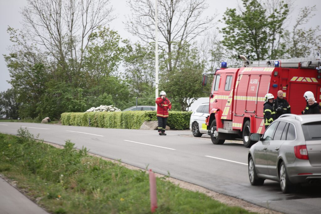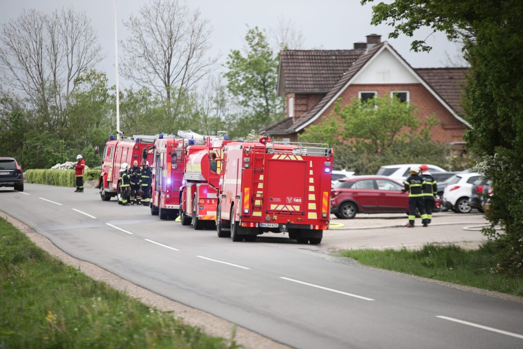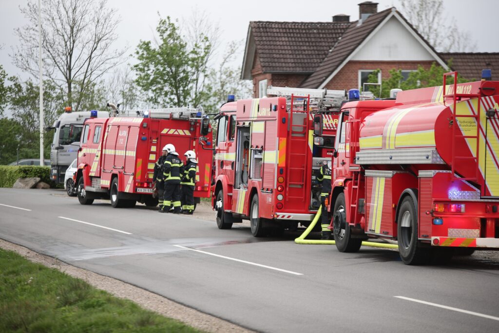 Flere brandkøretøjer er tirsdag morgen ankommet til Fåborgvej i Årre nord for Esbjerg.