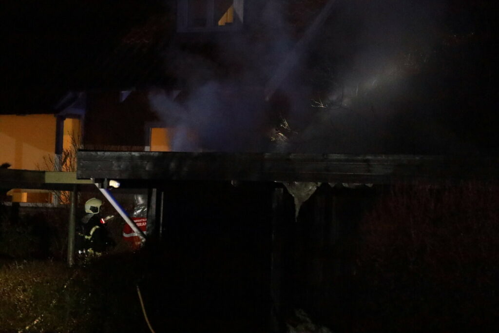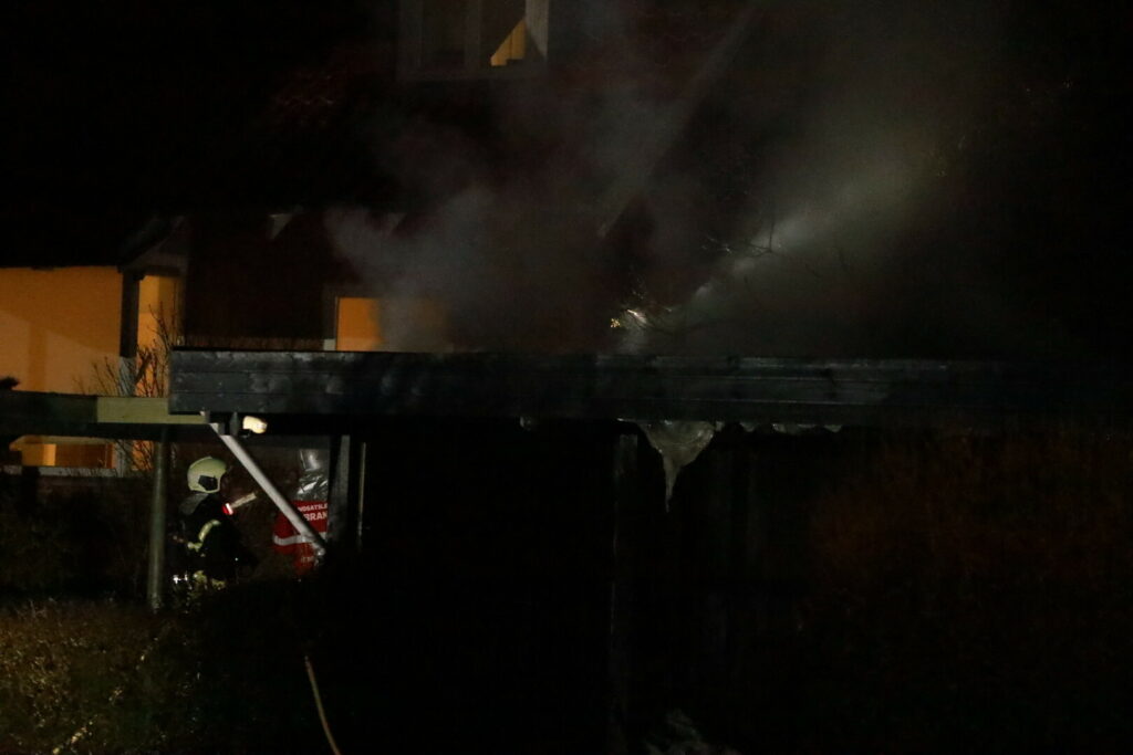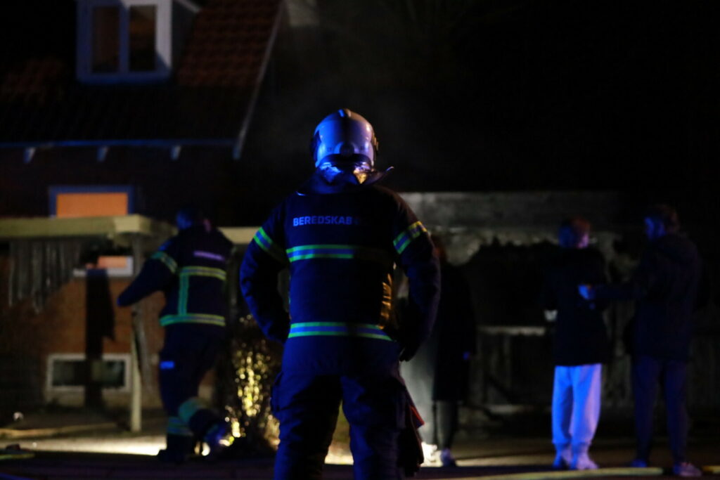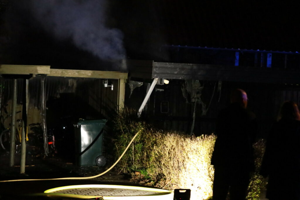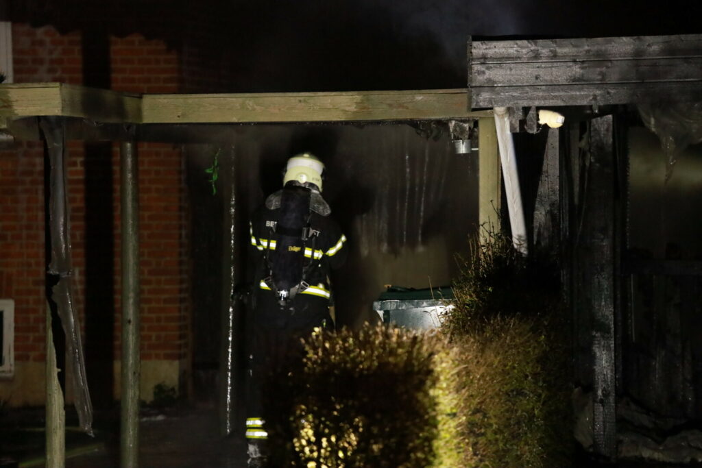 Ilden har fået godt fat på carporten og brandvæsnet er i gang med slukningsarbejdet på stedet.
