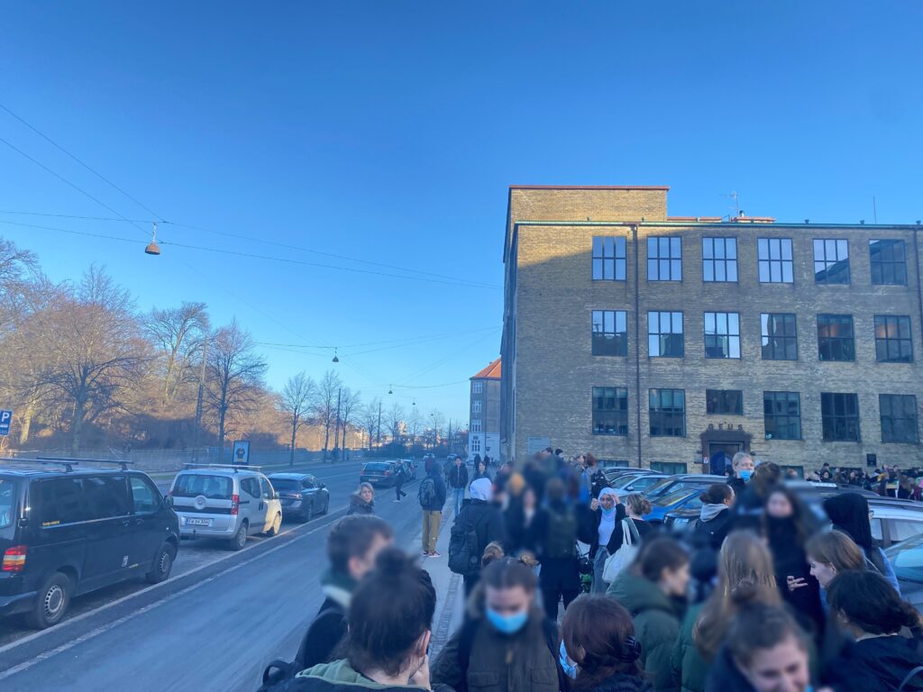 Eleverne på Gefion Gymnasium i København fik fredag formiddag afbrudt undervisningen, da en brandalarm gik i gang.
