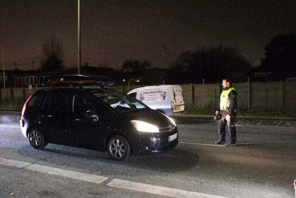 Færdselspolitiet holder fredag aften kontrol på Kløvermarksvej, hvilket er strækningen som mange unge mennesker bruger til at komme frem og tilbage til Refshale-Øen på en fredag aften.