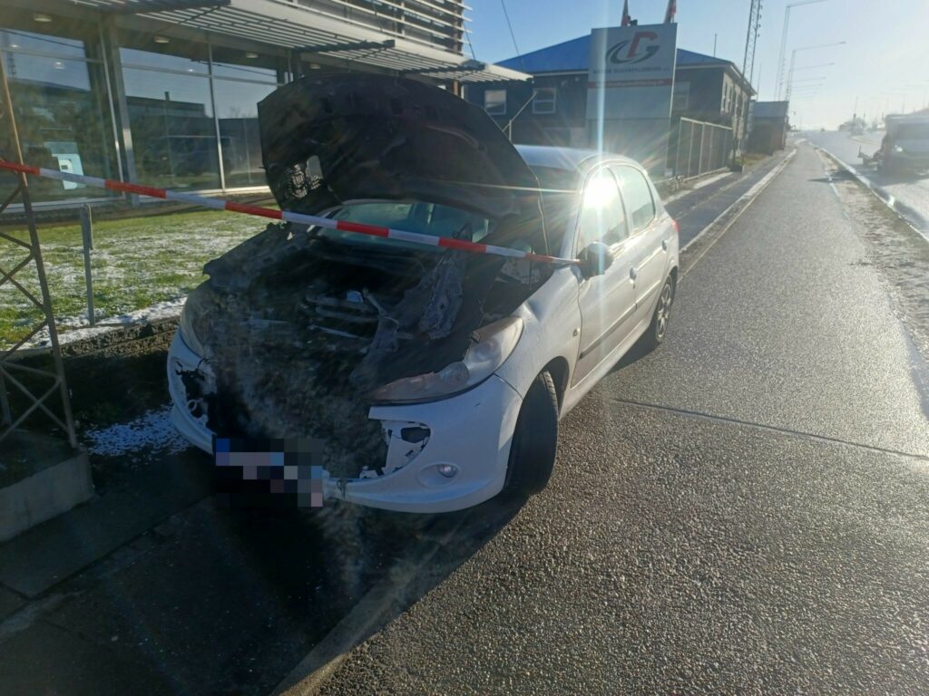 Som følge af færdselsuheldet brød den ene af de to biler i brand i motorrummet, oplyser Østjyllands Brandvæsen.
