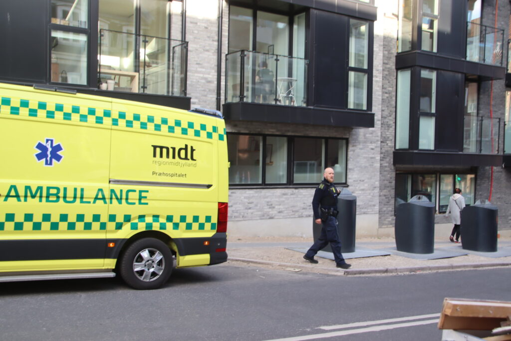 Østjyllands politi og ambulance er torsdag aften til stede på Nørre Allé/ Ny Munkegade i Aarhus C.