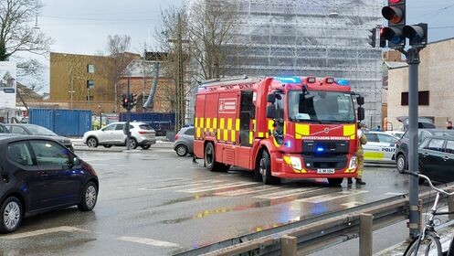 Hovedstadens Beredskab og politiet er til stede ved uheldet.