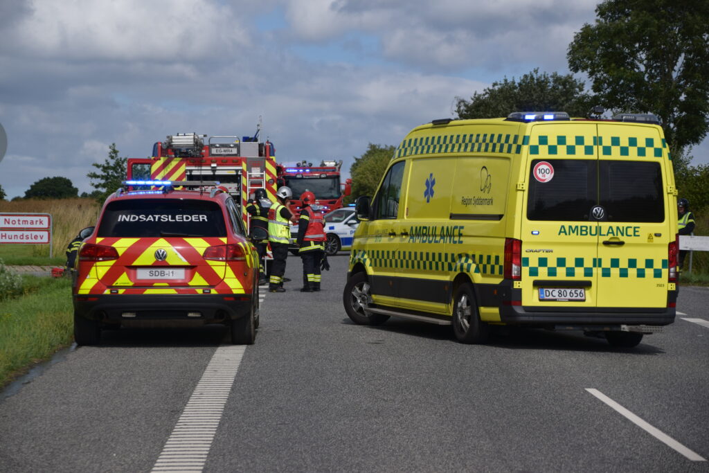 Der er mandag eftermiddag sket et færdselsuheld på Skakkenborgvej i Augustenborg på Als, hvor der var melding om fastklemt.