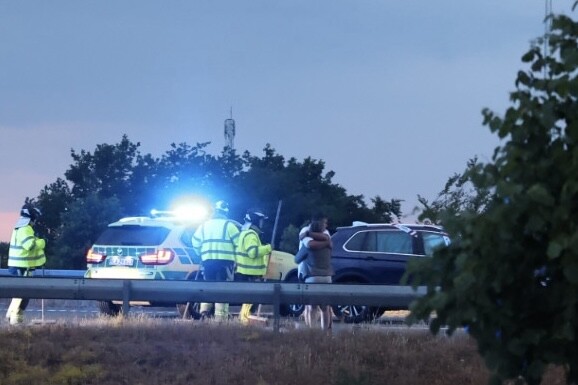 “Rute 21 Holbækmotorvejen er spærret i østgående retning ml. <10> Roskilde Ø og <9> Trekroner pga. Uheld. Forventes genåbnet i løbet af aftenen. Der er kø på strækningen og forlænget rejsetid må påregnes.”