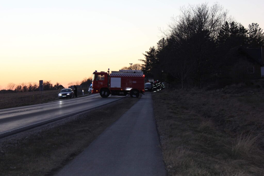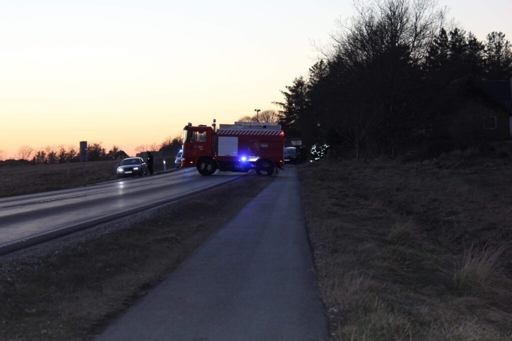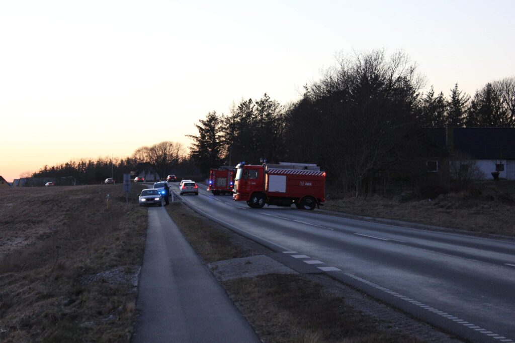 Politi og redningsmandskab er talstærkt til stede og vejen er under rednings og oprydningsarbejdet delvist spærret.