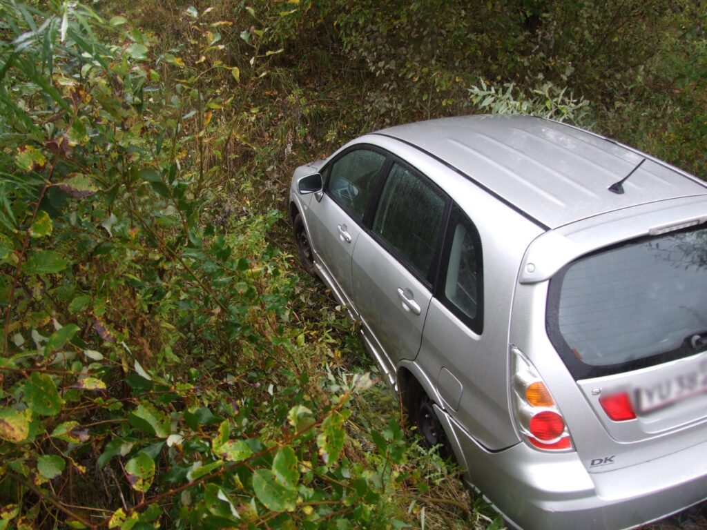 Bilen skulle angiveligt være kommet i skred og er havnet nede i grøften.