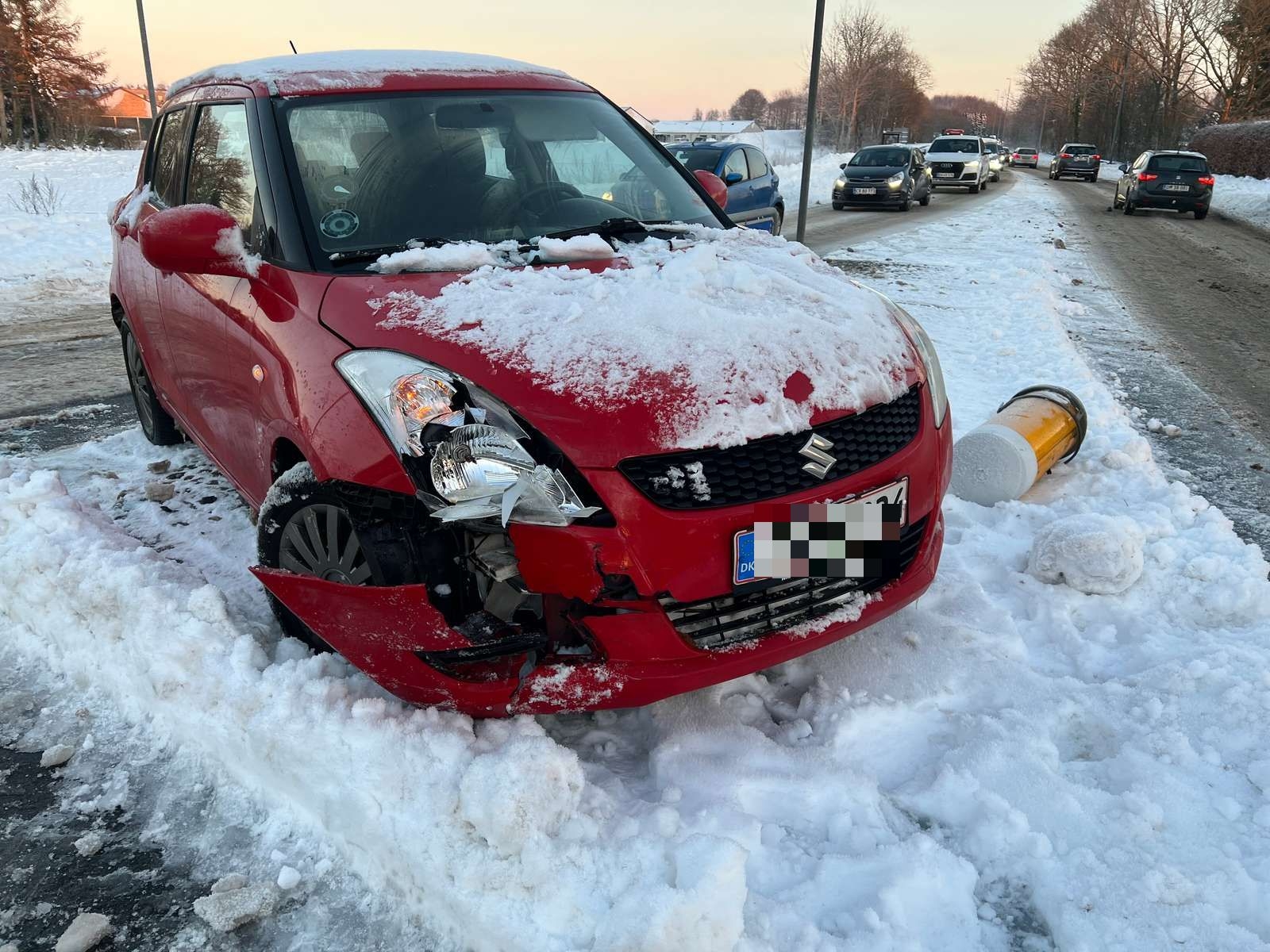 To personbiler har mandag eftermiddag været involveret i et glatføreuheld ved en rundkørsel i Nørskov Bakke, der ligger ved Silkeborg.