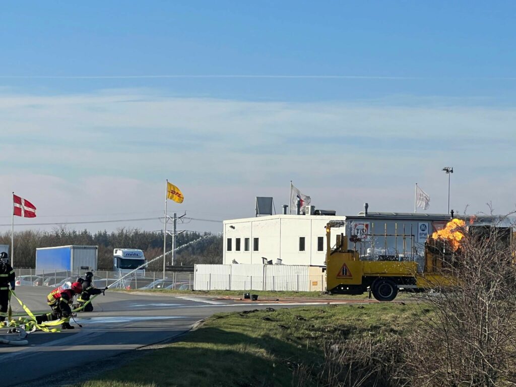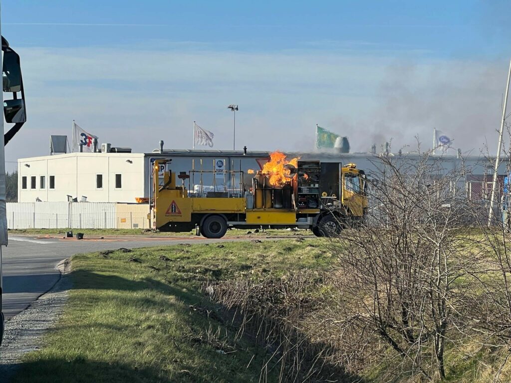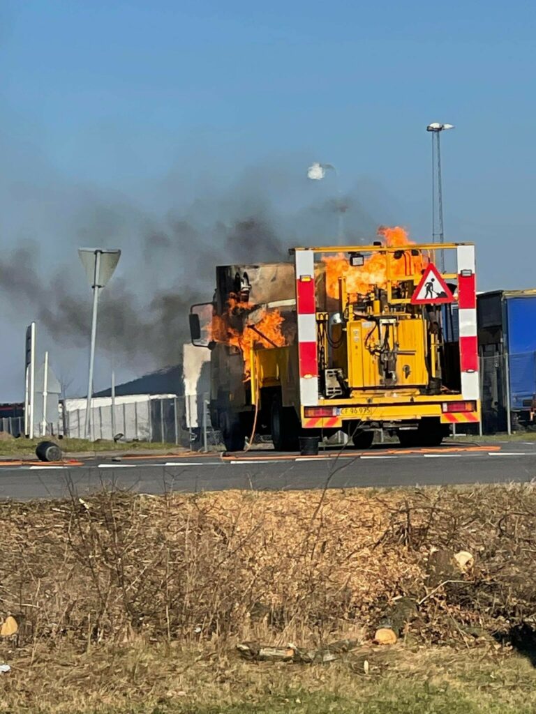 En lastbil er mandag eftermiddag brudt i brand i krydset mellem Pantagevej og Europavej i Padborg.