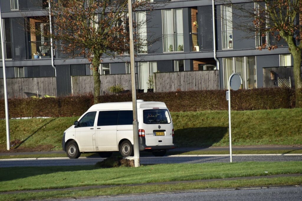 En hvid fotovogn holder i øjeblikket på Korskærvej i Fredericia holder øje med, om bilister overholder fartgrænsen.