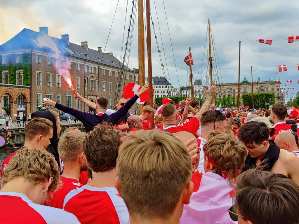 Af: Redaktionen 12. jun. 2021 - 15:42 Masser, masser og atter masser af glade roligans fylder lørdag Københavns gader forud for aftenens kamp i parken.