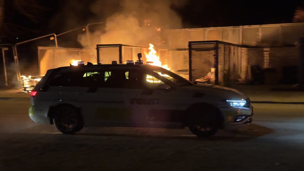 Søndag aften er der udbrudt to brande i et boligkvarter og derfor er politiet og brandvæsnet massivt til stede, hvor der er blevet sat ild til affald to forskellige steder inden for kort tid.