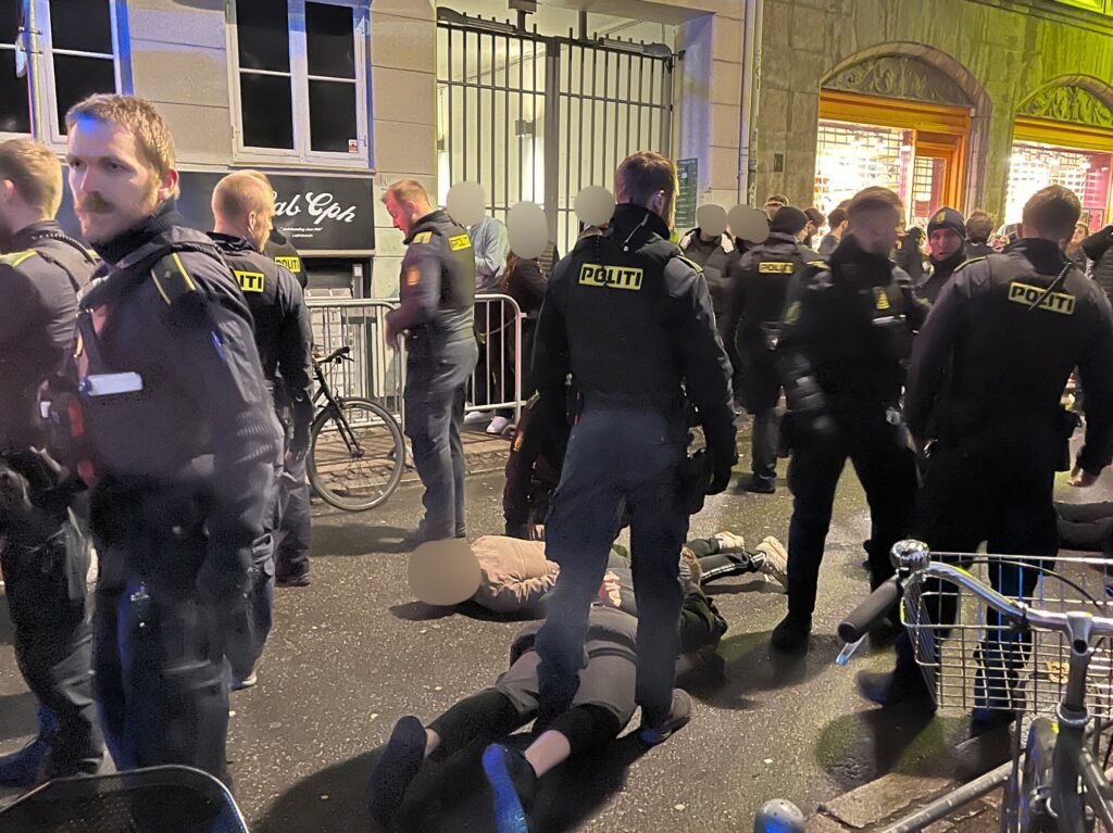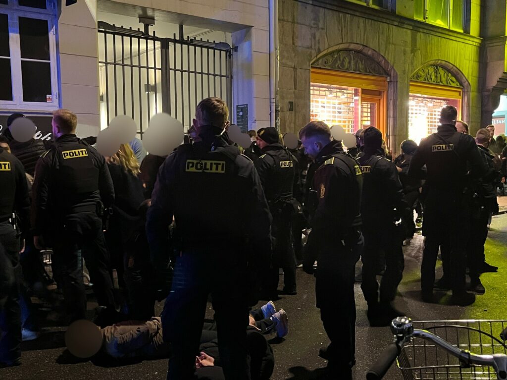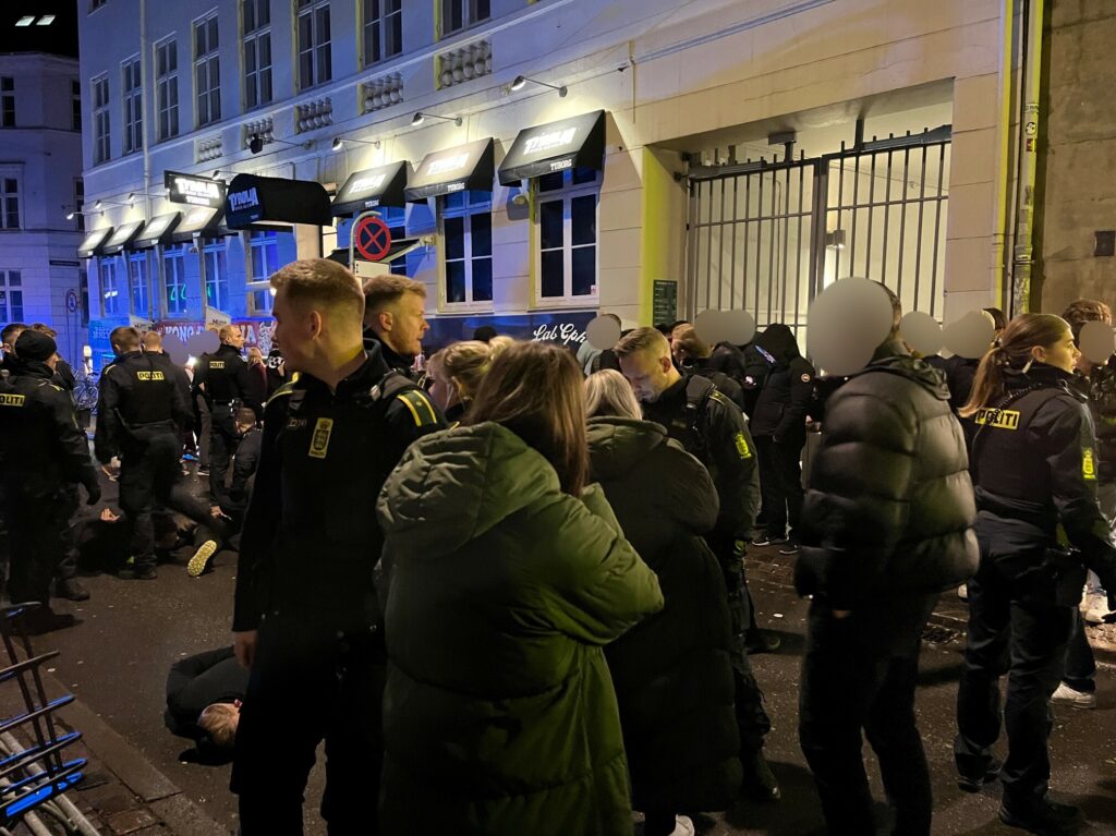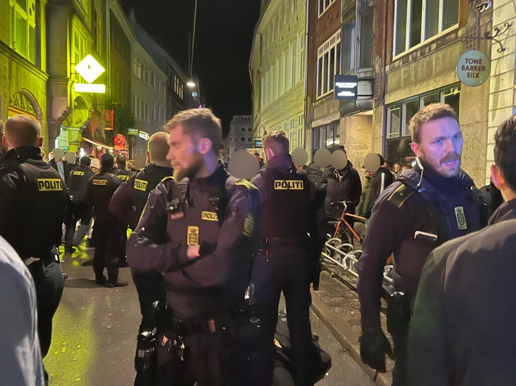 Politiet prøvede at danne sig et overblik over situationen i den feststemte og menneske proppet gade.
