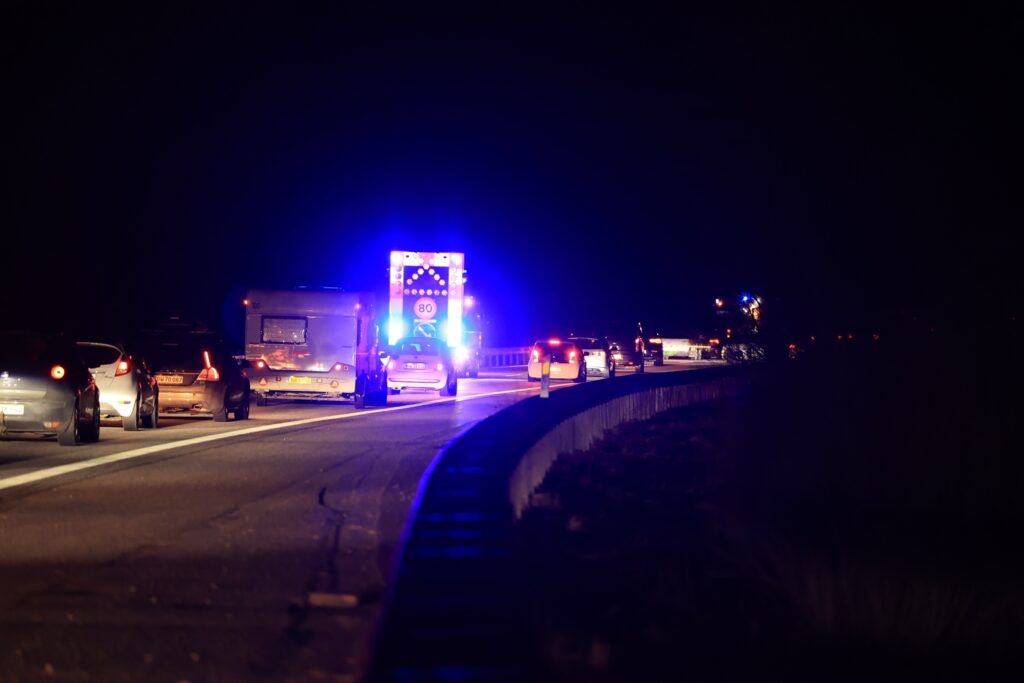 I forbindelse med beredskabets arbejdet på stedet er højre spor blevet afspærret.
