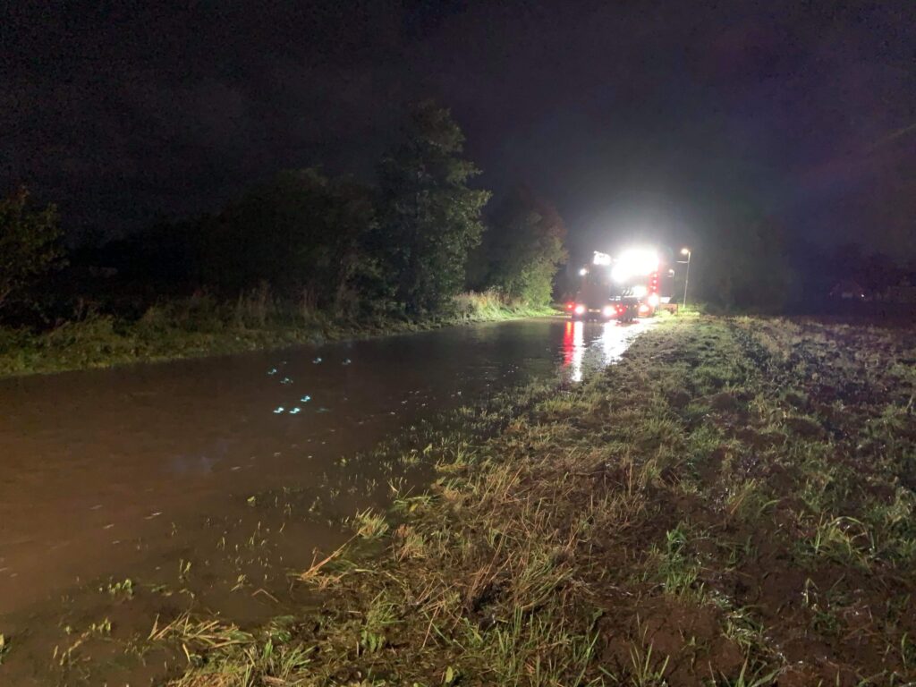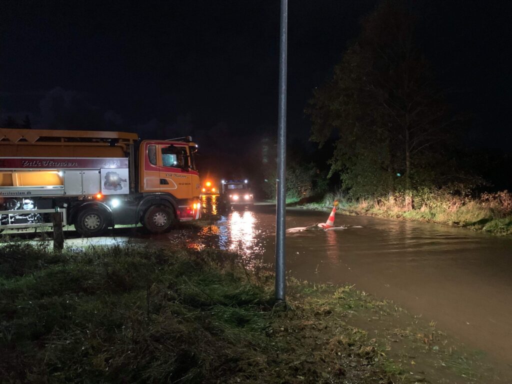Flere veje er onsdag/ natten til torsdag oversvømmet i Fole i Sønderjylland.