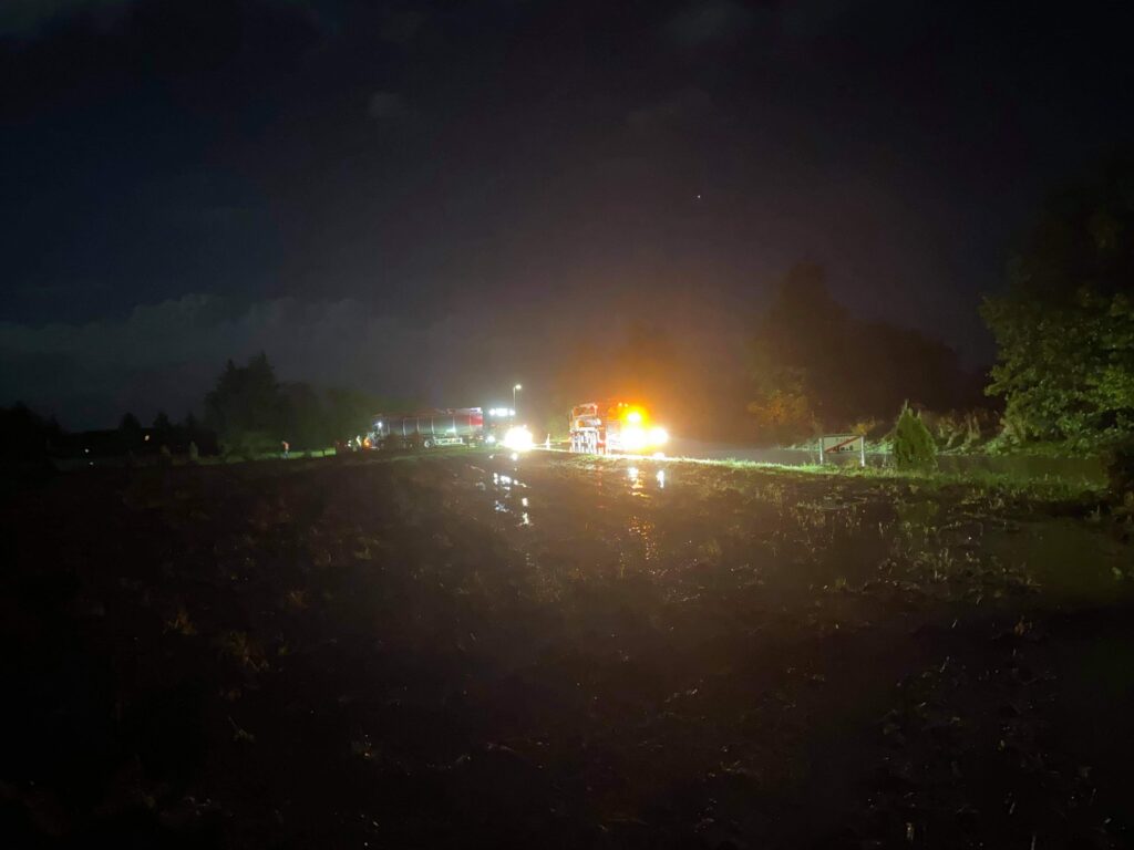 Beredskabet er lige nu til stede på Stampemøllevej i Fole, hvor vejen er helt spærret på grund af de store vandmasser som er kommet ned.