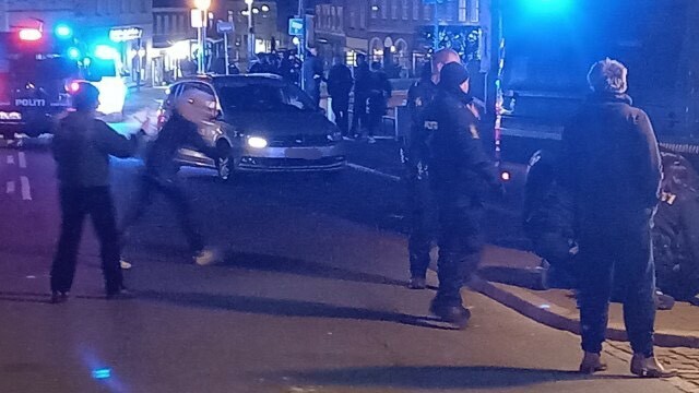 Foran Sportspub Målet opstod der mandag aften også ballade mellem politi og tilskuere.