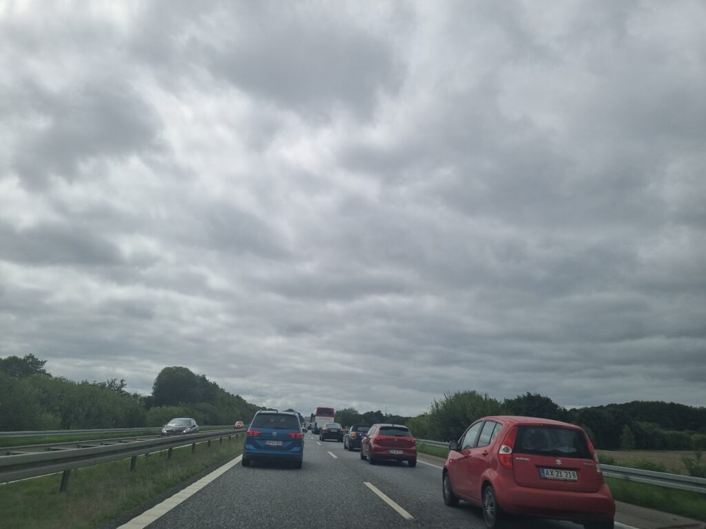 Det har betydet, at der nu er en flere kilometer lang kø fra uheldsstedet.
