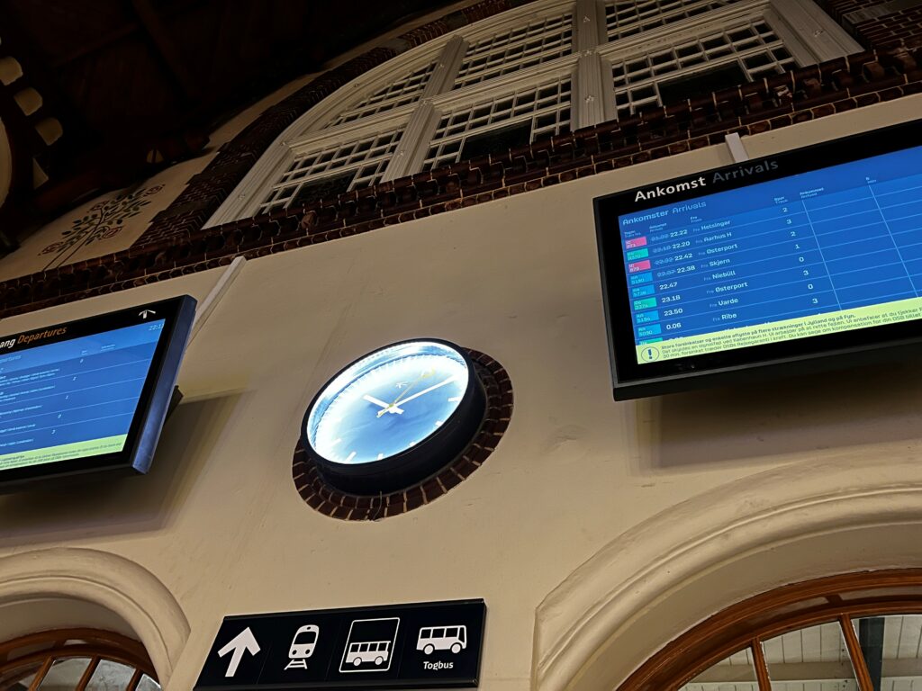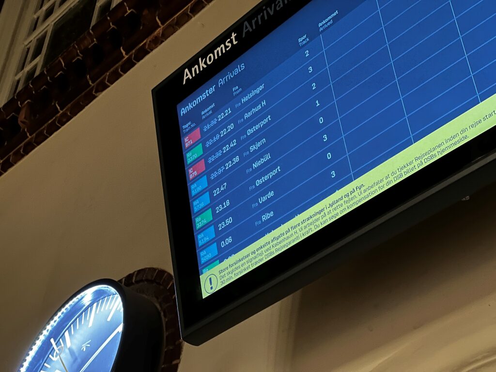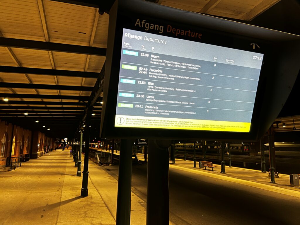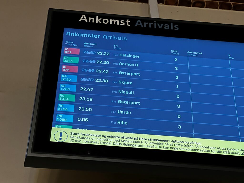 Informationsskærmene på Esbjerg Banegård er fulde af forsinkelser fredag aften.