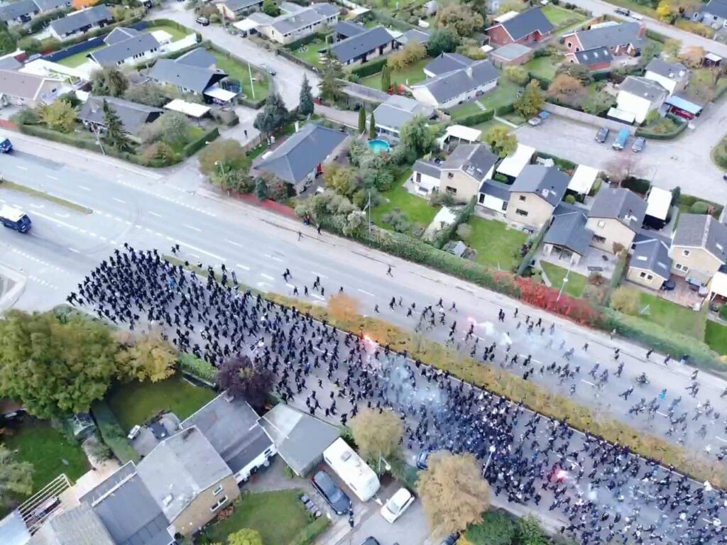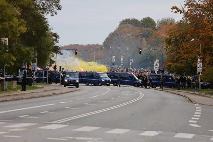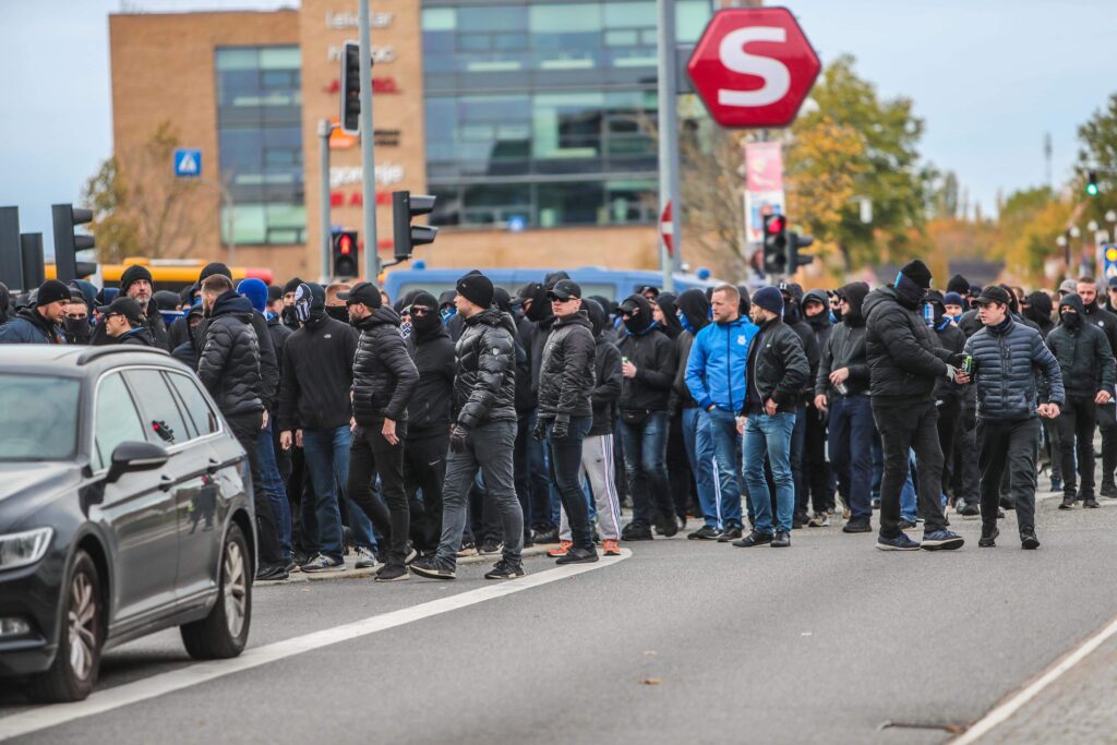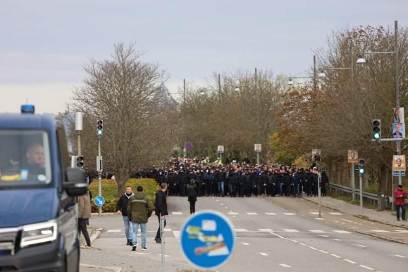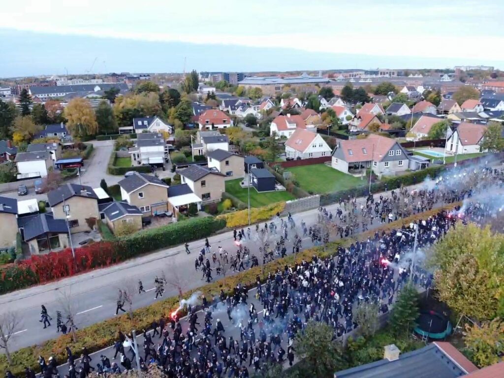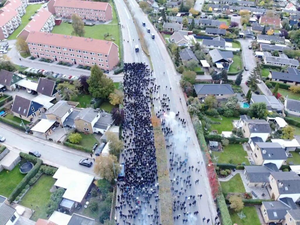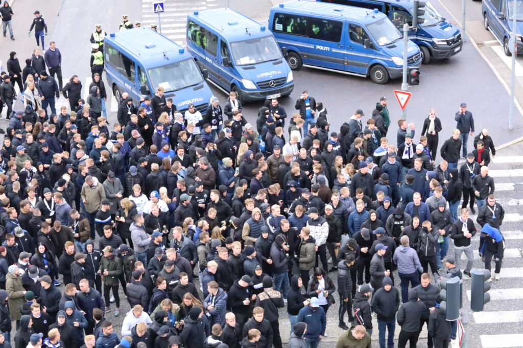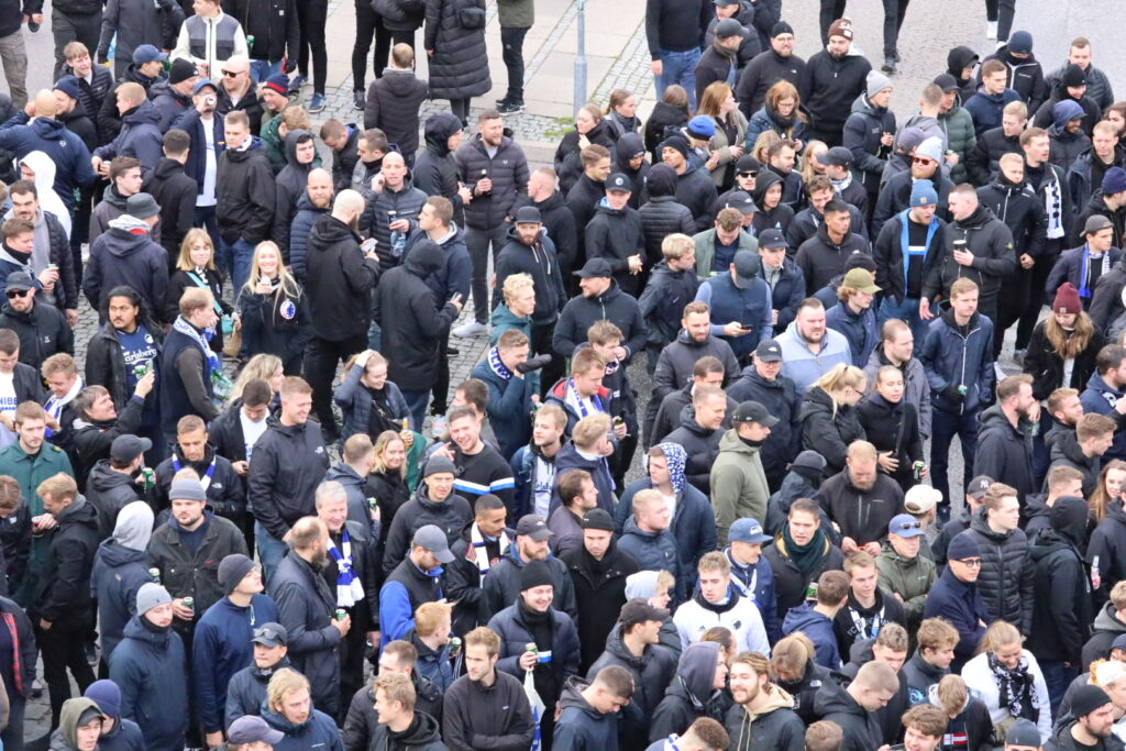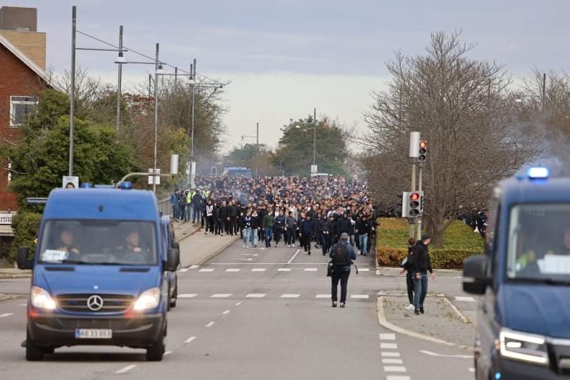 Søndag middag er mere end tusinde FCK fans i fælles march fra Glostrup station og mod Brøndby stadion, hvor derby mod ærkerivalerne fra Brøndby fløjtes igang foran et udsolgt stadion klokken 14.