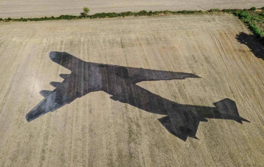 Skyggerne skal forestille det verdens største transportfly, Antonov 225 Mriya, som blev ødelagt ved et russisk angreb for et halvt år siden.