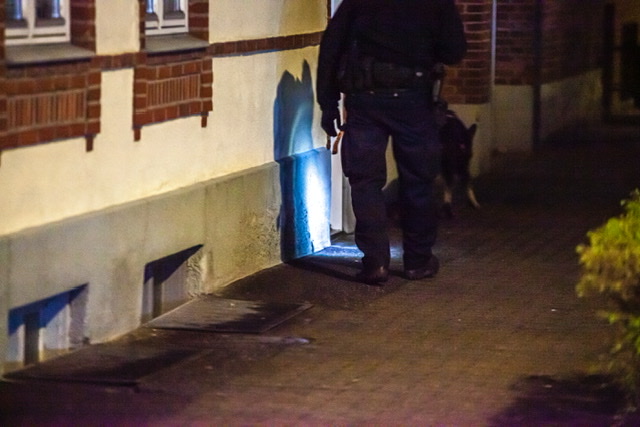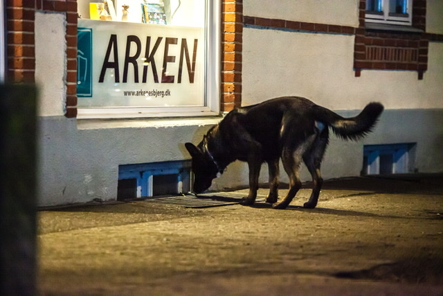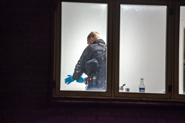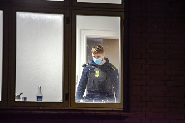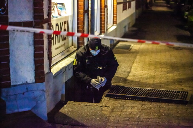 Politiet har natten til søndag haft afspærret en del af Niels Juels Gade i Esbjerg. Politihunde har gennemsøgt riste, gaden og kældre. Flere betjente set søge spor i en lejlighed, mens en person er anholdt og kørt væk i DNA dragt.