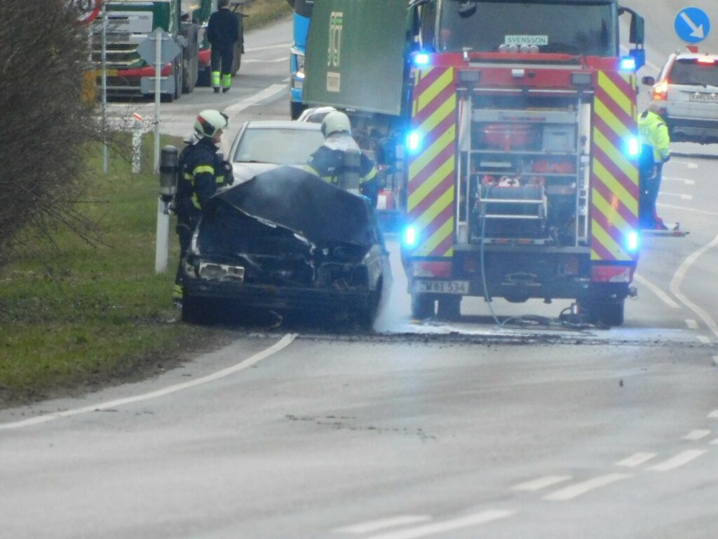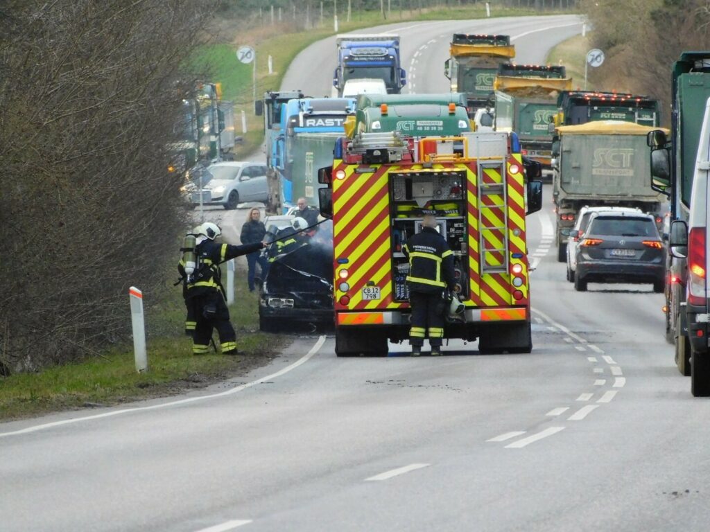 Brand i Volvo i den nordsjællandske by Skævinge
