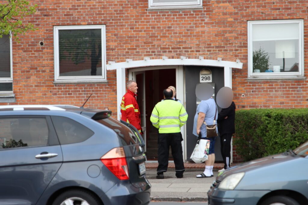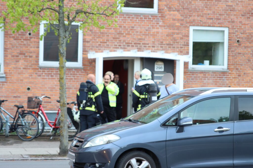 Brandvæsnet er til stede sammen med politi og redning, da der er observeret en kraftig lugt af gas i en opgang.