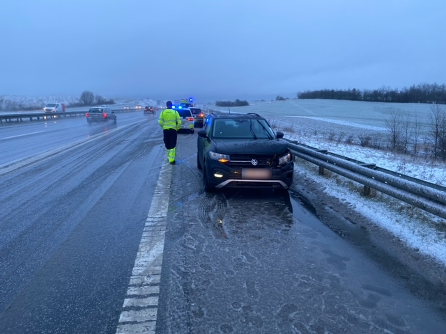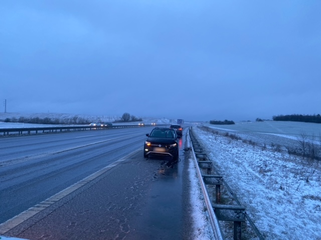 En bil har fredag morgen været involveret i et solouheld på Midtjyske Motorvej nær Grejs afkørsel.
