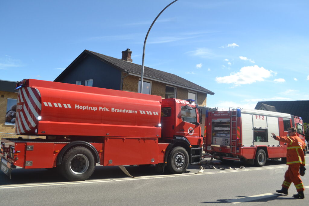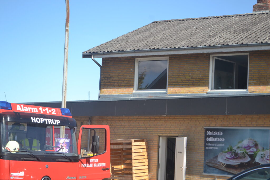 En lejlighed er mandag eftermiddag gået i brand på Hoptrup Hovedgade i Hoptrup.