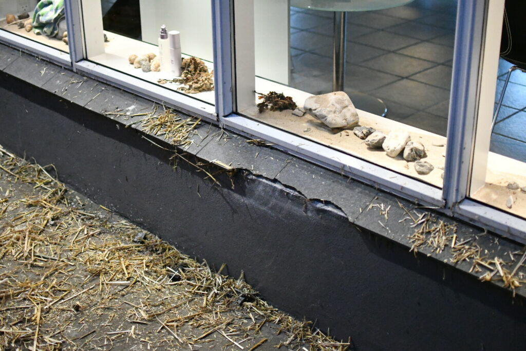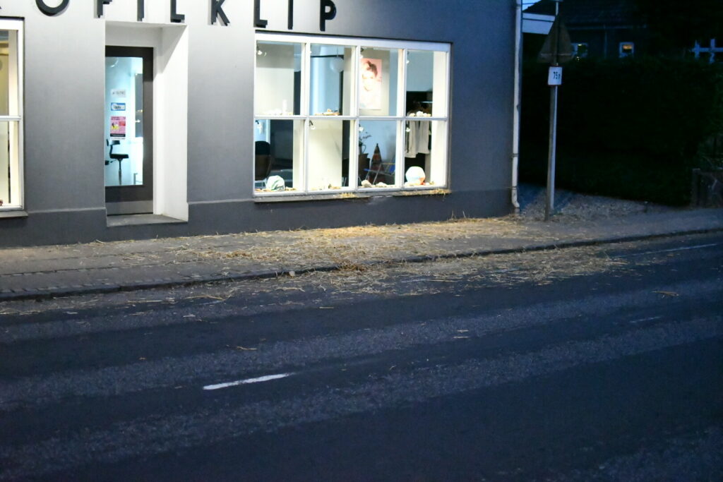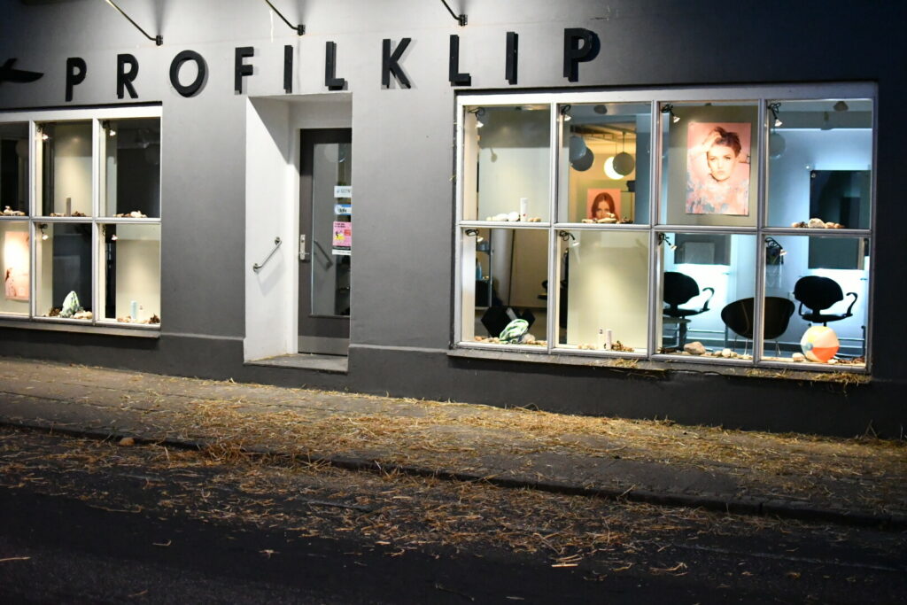 ”Ballerne er blevet fjernet, men det ligner, der er sket skade på frisørens vindueskarm,” fortæller Presse-fotos.dks fotograf.