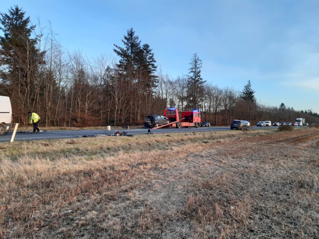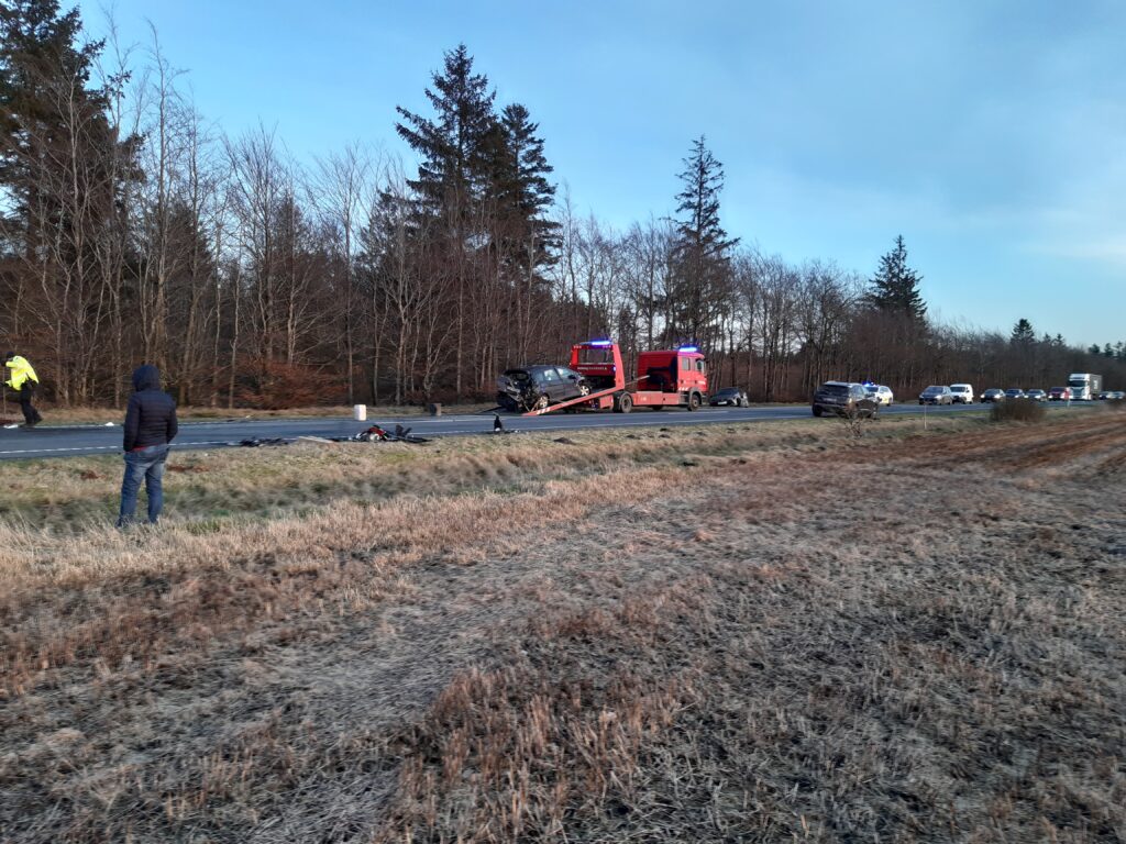 I forbindelse med uheldet har der kun været åbnet for det ene spor, så forbikørende biler kunne passere stedet.