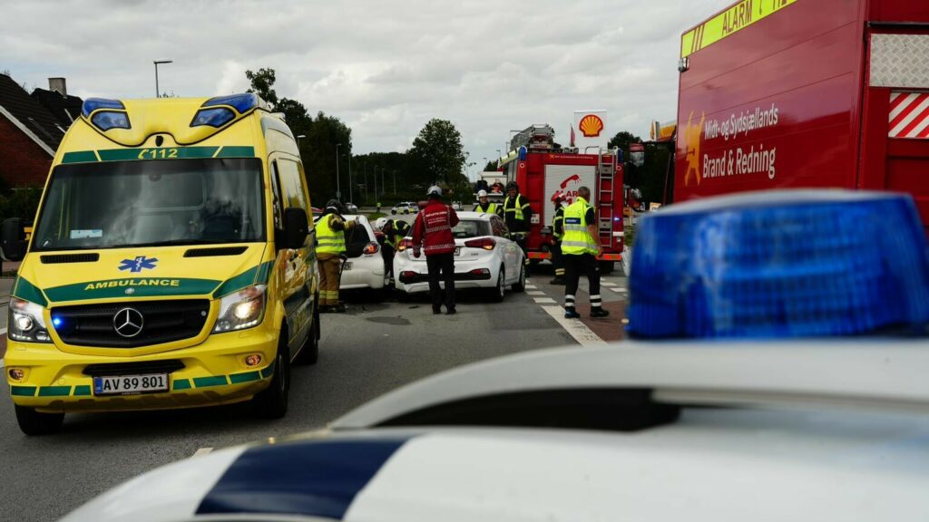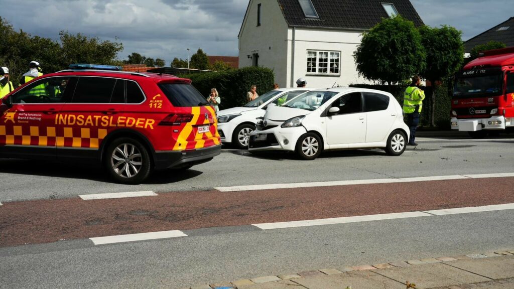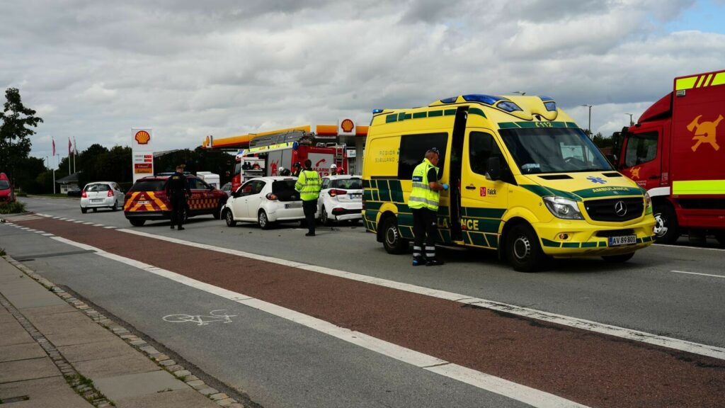 “Der er tale om et harmonikasammenstød, hvor tre biler er stødt sammen,” lyder det fra Presse-fotos.dks udsendte.