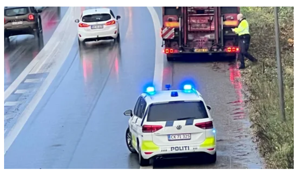 Vejhjælpen er netop ankommet til stedet og man er i gang med at gå fjernet bilen, så trafikken igen kan glide.