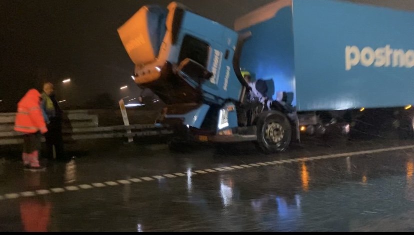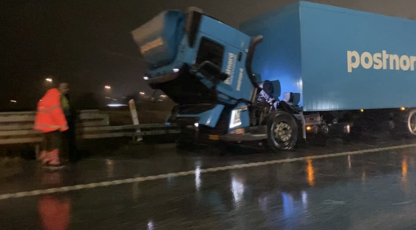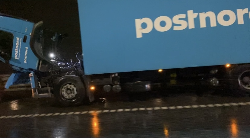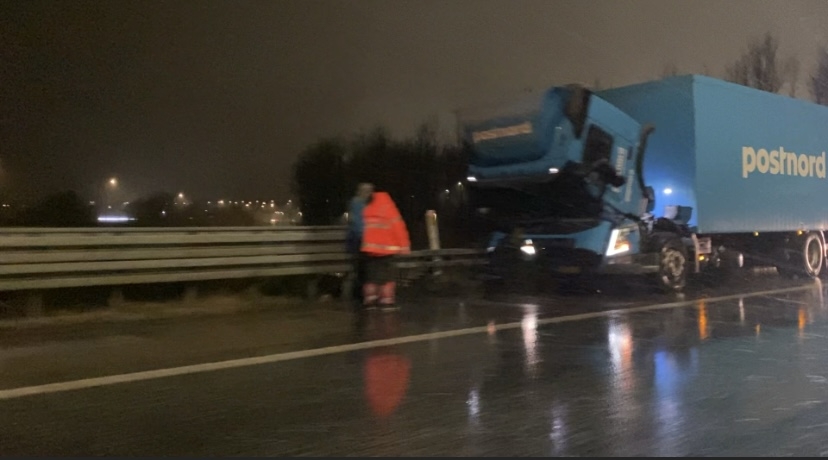 Det skyldes en havareret lastbil, som har brug for hjælp til at blive flyttet ind til siden. Derfor er beredskabet og Falck ankommet til stedet for at hjælpe med at åbne sporet igen.