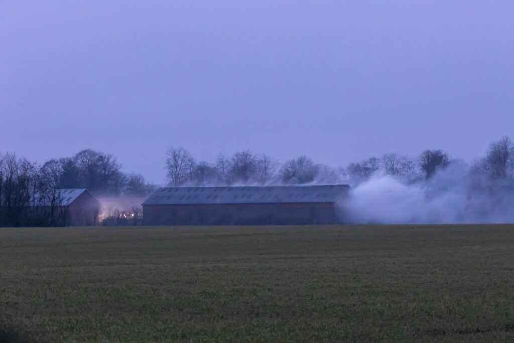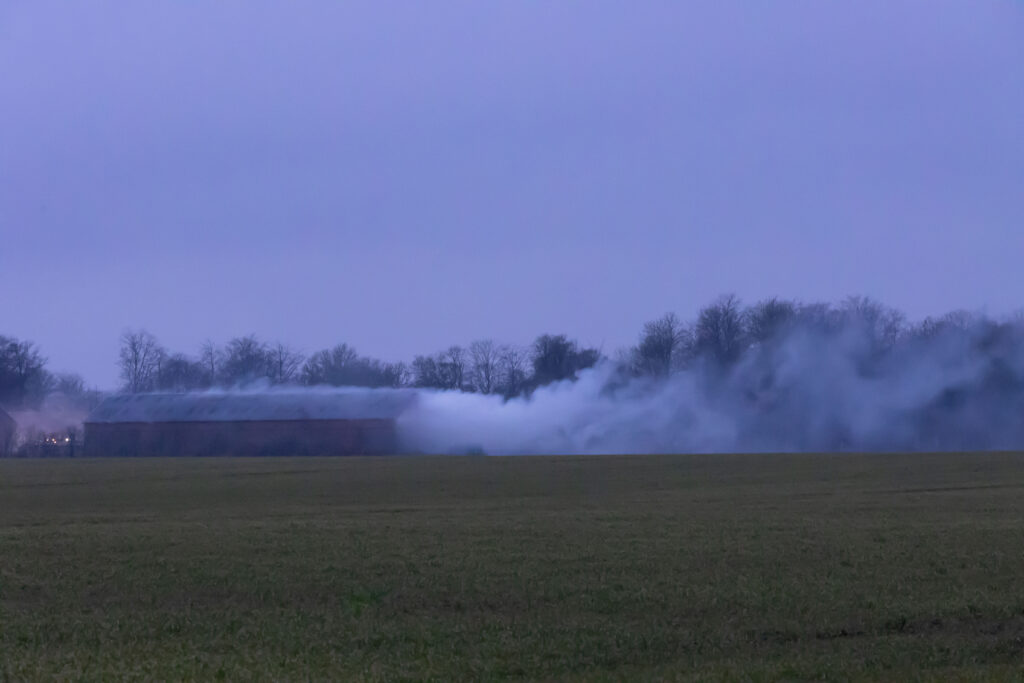 Branden havde ulmet hele dagen, men den blev ved med at ulme og her til aften udviklede branden sig og brandvæsnet blev tilkaldt.