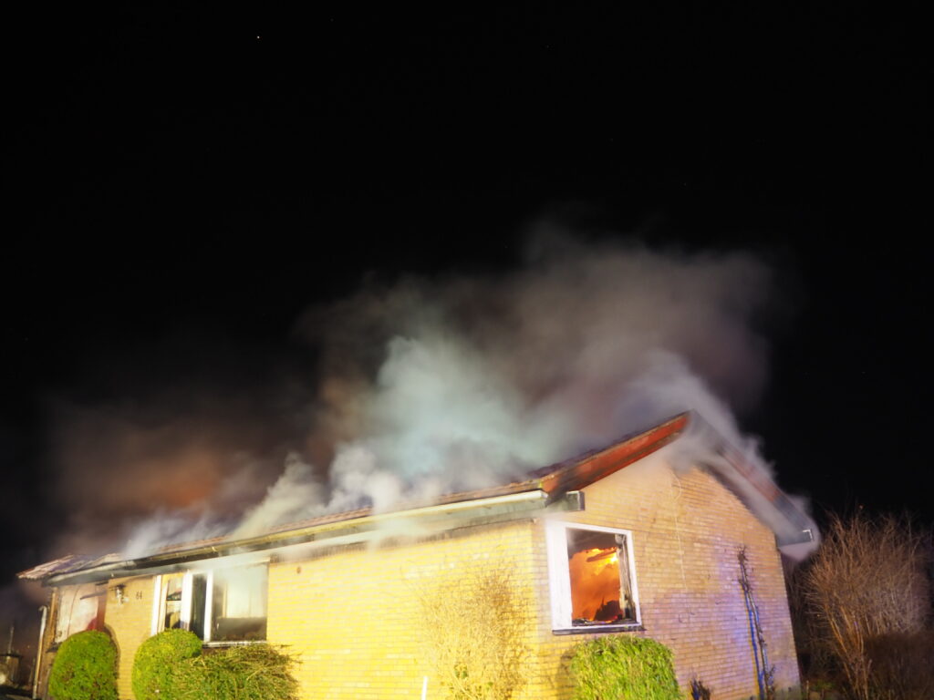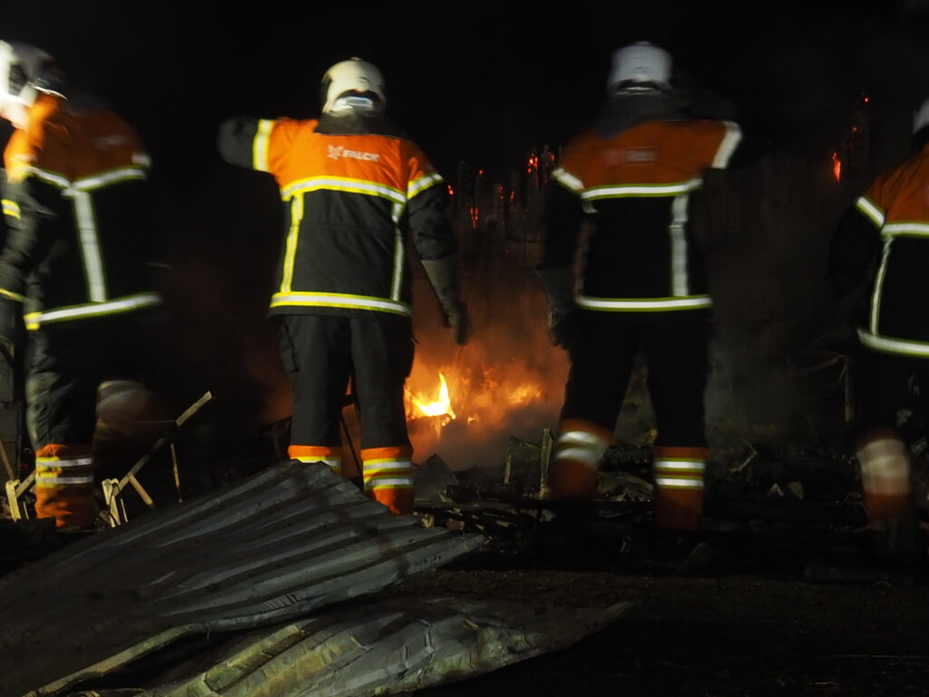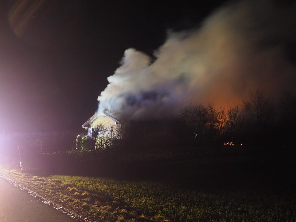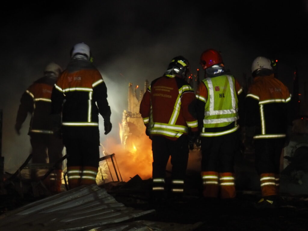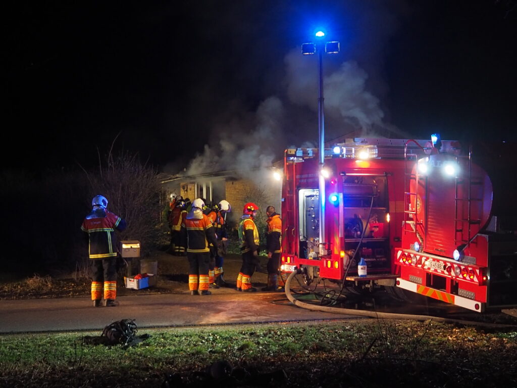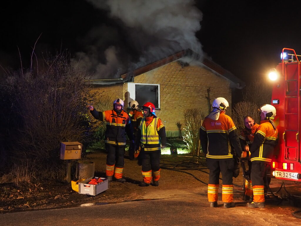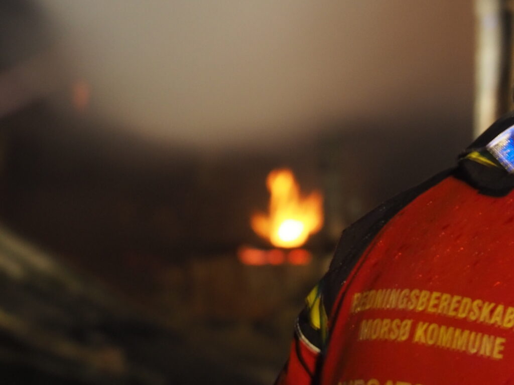 Slukningsarbejdet er i gang på stedet, men bygningen står ikke til at redde.