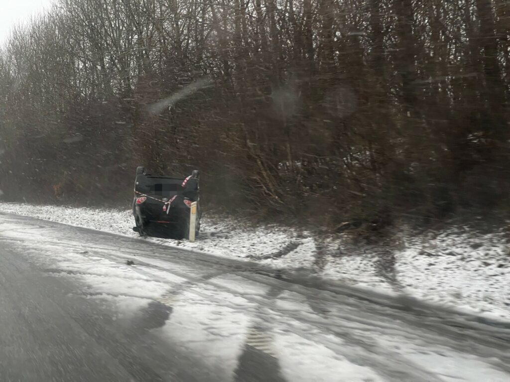 En bil er søndag endt på taget på Esbjergmotorvejen ved afkørsel 75 i Esbjerg N.
