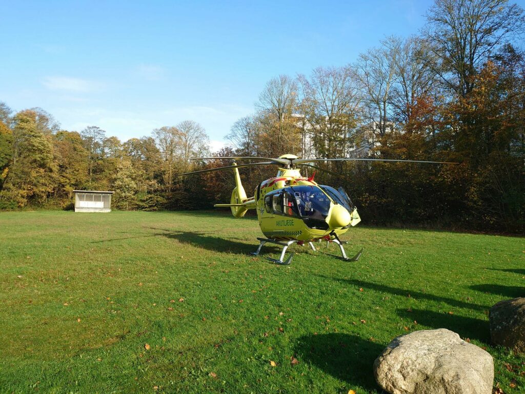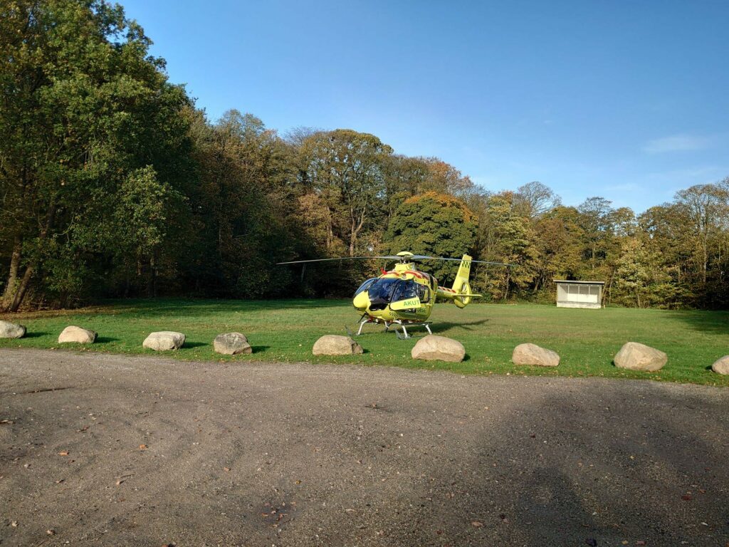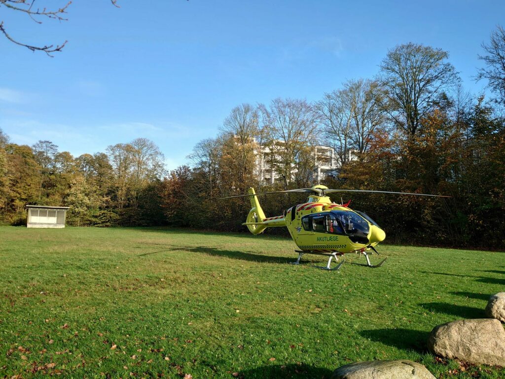 En lægehelikopter er onsdag formiddag landet på en græsplæne ved Ældrecenter Svanelundsbakken i Hjørring.