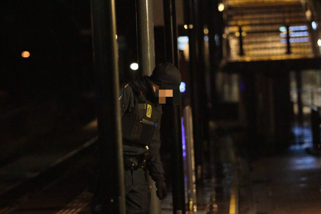 Mandag aften er flere betjente og hundepatruljer rykket ud til en melding om tumult i en gangtunnel. Betjentene har haft på en person på stedet og hundene er set i et større område omkring stationen.