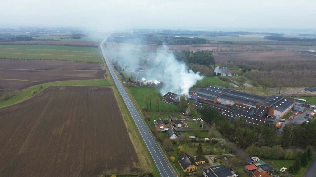 En brand på et DLF lager i Langstrup, Randers raserer nu på tredje dagen. Røgen blæser ind under en nærliggende hovedvej, der nu er afspærret. Samtidig opfordrer politiet borgere i området til at lukke døre og vinduer
