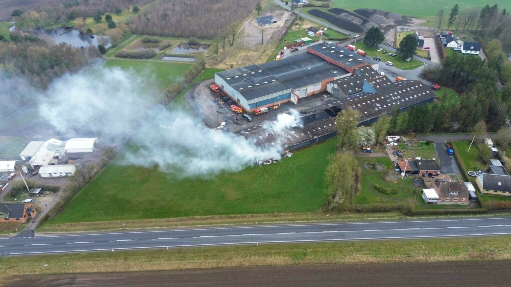 ‘Hvis man føler sig generet af røg og lugt, så gå ind og luk døre og vinduer og sluk ventilationsanlæg. Arbejdet med at slukke branden er fortsat i gang,’ oplyser Østjyllands Politi.